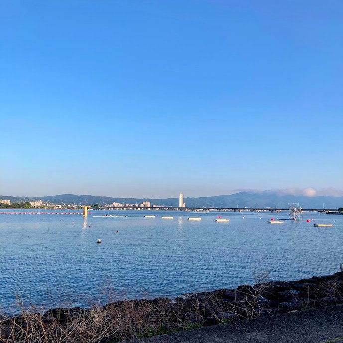 散歩のおじさんや犬の散歩をさせているお姉さんなど琵琶湖は人がたくさん。 朝6時でもこれだけ人がいるって愛され感満載。